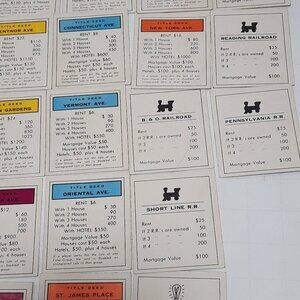 Vintage Monopoly Game Replacement Property Title Deed Cards - Complete Set of 28