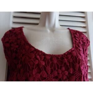 Vintage Monroe and Main maroon lace front tunic L Mint condition 100% cotton lace Armpit to armpit 23 shoulder 20 length 21