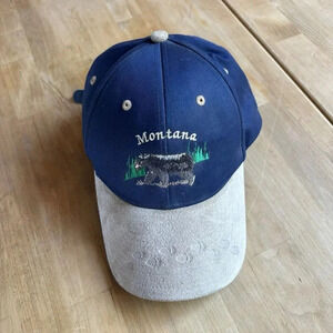 Vintage Montana Hat Cap Strap Back Blue Suede Brim Embroidered Bear Paw Prints
