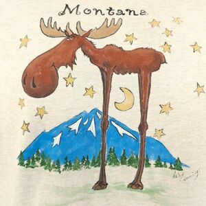 Vintage Montana Moose T Shirt Mens Size Medium Y2K Animal Nature Tee Moon Stars