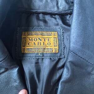 Step out in style with this vintage Monte Carlo black leather trench coat, a genuine piece of fashion. This classic overcoat is crafted from real leather with a 100% polyester lining, offering both durability and a sleek fit. It features a full-length design and button-front closure, perfect for adding a dramatic touch to any outfit. The coat is in excellent pre-owned condition with no significant flaws for its age. Its timeless design and high-quality construction make it a valuable addition to your wardrobe, harkening back to a stylish era of fashion. Heavy coat. Will ship fast!