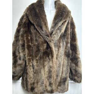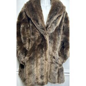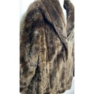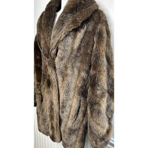 Vintage Monterey Fashions Brown Faux Fur Coat Size 12 USA Glam Retro Mob Wife