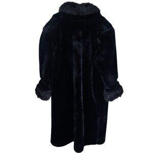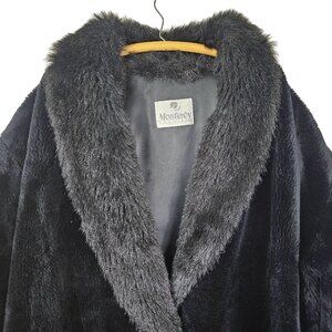 Vintage Monterey Fashions Full Length Faux Fur Coat 2X Black Mobwife Made in USA