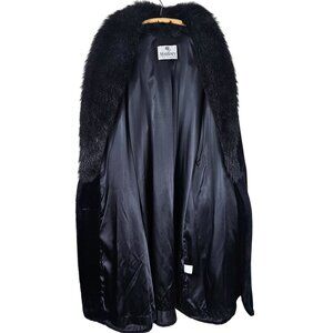 faux fur coat, Monterey Fashions, black coat, winter wear, acrylic coat, acetate lining, USA made, button closure, faux fur trim, women's coat, 2X size, elegant coat, fashion, baddie, mobwife, formal, vintage, 70s, 80s, mobwife, gothic, goth princess, elegant, royalty, heavy coat, going out, full length overcoat, long coat