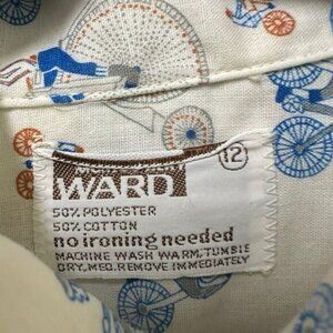 Vintage Montgomery Ward Boys 12 Button Down Shirt Bicycle Print Western Retro