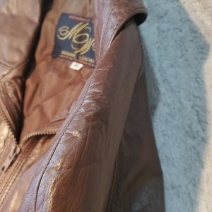 Vintage Montgomery Ward Brown Leather Bomber Jacket Size 42 or Women's 12