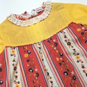 Vintage Montgomery Ward orange and yellow funky mod floral dress. Size is estimated as 4T. Please check the measurements provided.
