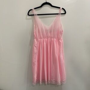 Vintage Montgomery Ward Pink Lace Slip Nightgown Dress Size Large Made In USA