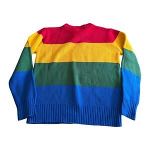 Vintage Montgomery Ward Rainbow Primary Color Striped Sweater Jumper Girl SZ L