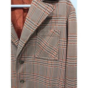 Vintage Montgomery Ward Retro Plaid Brown Orange Tan Jacket Blazer Size Medium