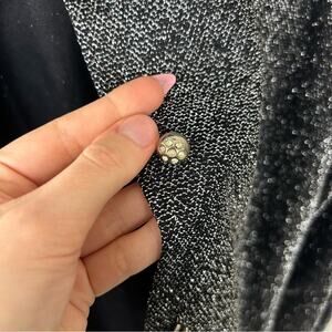 Good pre worn vintage condition. Does have a bit of a vintage smell to it. Amazing silver woven thread sparkle material. Vintage Montgomery ward brand. Has the union made tag. Faux diamond detail buttons. Comes with a matching shell tank top to layer underneath. No size tag so please refer to below measurements. All sales final.