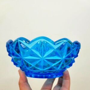 Beautiful Vintage Monticello Indiana Glass Blue Deep Cut Candy Dish