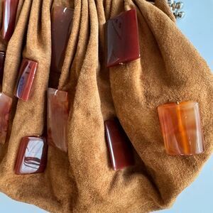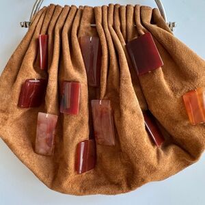 Vintage Moo Roo Charleston Brown Suede Carnelian Stone Asymmetric Kiss Lock
