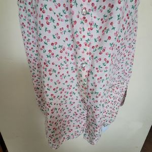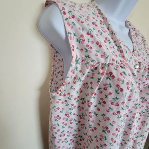 Vintage Moon Dance sleeveless cherries red white smocked house shirt size m