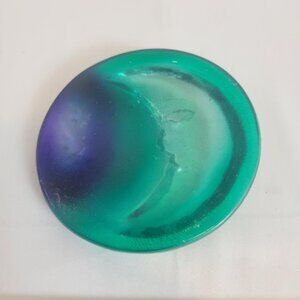 Vintage Moon Face w/Stars Blue & Teal Glass Paperweight Suncatcher Art 4"