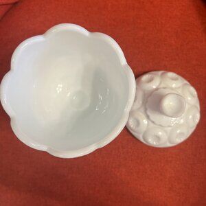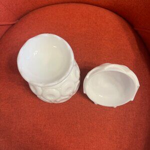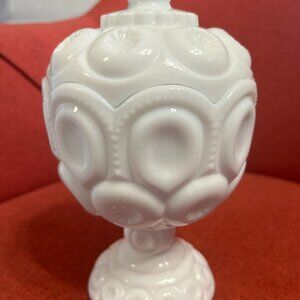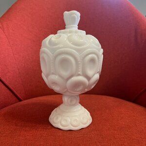 Vintage Moon and Stars Milk Glass Compote Jar with Lid - LE Smith 1960s