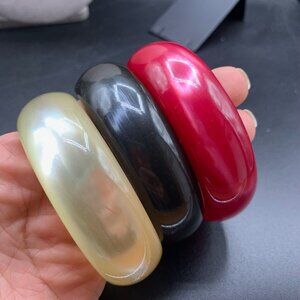Vintage Moonglow Wide Lucite Plastic Red Black Beige Bangle Bracelets Set of 3