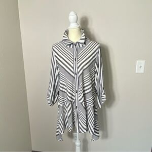 Vintage Moonlight Asymmetrical Striped Button Front Tunic Blouse Women's Size M.