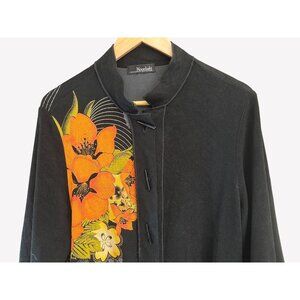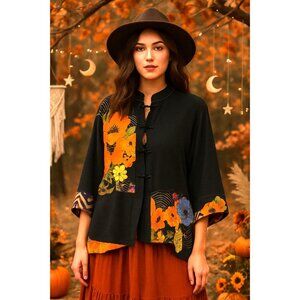 Vintage Moonlight Black Orange Floral Print Blouse Bohemian Halloween Fallcore