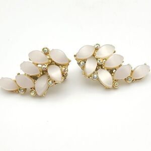 Vintage Moonstone Earrings, 1960s, rhinestones, clip on