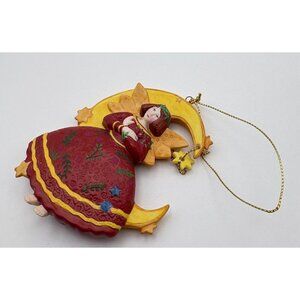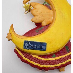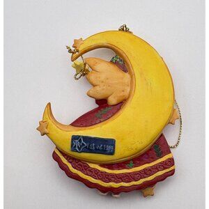 A 1999 vintage angel moon ornament that evokes the charm of bygone eras. This beautifully detailed piece will add a touch of nostalgia to any holiday decor.
