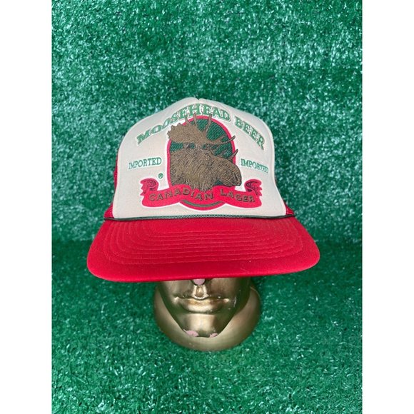 Vintage Moosehead Beer Canadian Lager Trucker Hat Snapback Cap Red Mesh Foam