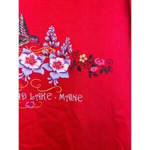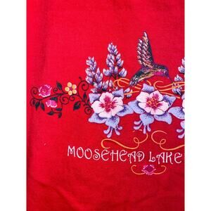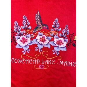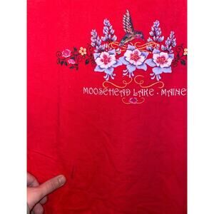 Vintage Moosehead Lake Shirt Maine Graphic Flower Bird Red 90s Tee VTG 1990s L