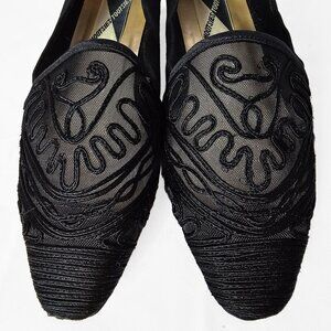 Vintage Mootsies Tootsies 90's Black Embroidered Slip On Flats