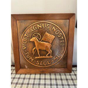 Vintage Moravian Church Copper Lamb "Vicit Agnus Noster Eum Sequamur" Plaque