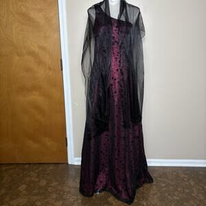 Vintage Morgan & Co Formal Gown Floral Mesh w/beaded Shawl Size 11/12 Whimsigoth