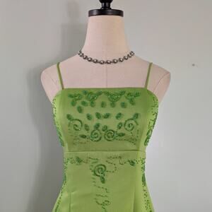 Vintage Morgan Co Prom Dress Maxi Gown 10 Green Y2K 90s Floral Bead Fairy Glam