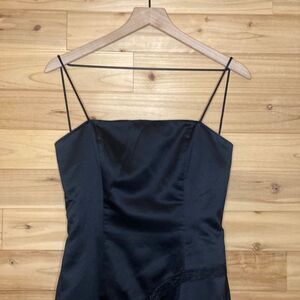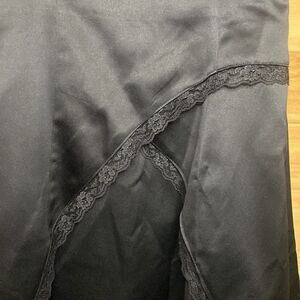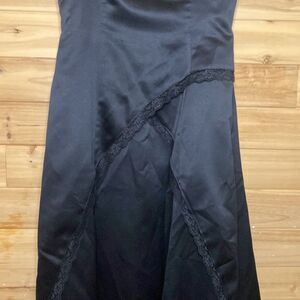 All Black Spaghetti Strap Gown With Lace Details Across & Black Lace On Neckline That Would Stand Up While Being Worn Snap & Zipper Closure