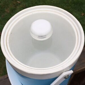 I love the colors of this vintage piece. Has a few scuffs from use but overall very good condition, inside is very clean. Would make a great party Ice Bucket