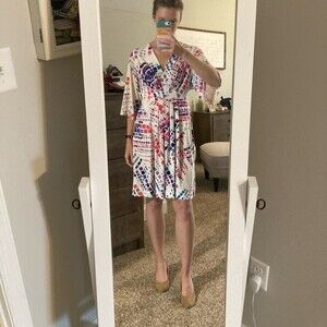 Vintage Morgan McFeeters Pink Purple Cream Vneck Casual Summer Dress Size 6