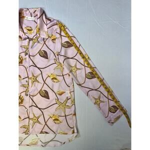 Vintage Morgana Button Up Shirt SIZE XL Blouse Made in Italy Shell Print Coastal Flaw Tiny Hole on the bottom see photos