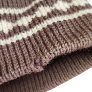 This vintage ski hat features a diamond pattern. It is made of 100% wool in the USA. There's a small tear on the edge of the band. Itnis tightly knit and hand made.