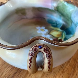 Vintage Morimura M Nippon Hand Painted Bowl Handles Beaded Moriage Floral