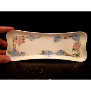 Vintage Moritz Zdekauer MZ Austria Bread Celery Tray Plate Trinket Vanity Dresser Dish Blue Pink Flowers