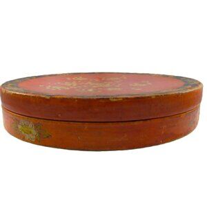 The dish in very good vintage condition. The box in fair condition with some paint chipped off top and sides.