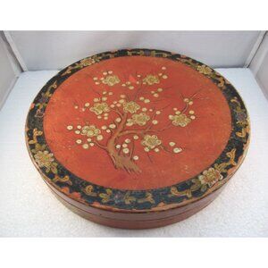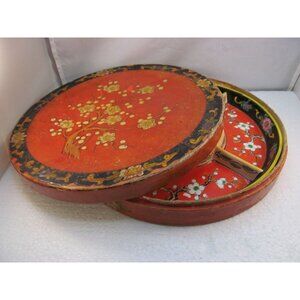 Vintage Moriyama orange floral serving dish in original wood box made in Japan.