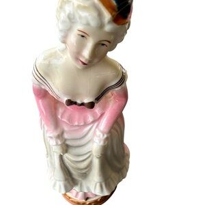 Vintage Moriyama Porcelain Colonial Lady Figurine 7.5" Pink Occupied Japan!