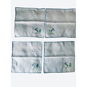 Vintage Morning Glory Linen Napkins Set Of 4 Blue & Green On White 13.75” x 14”