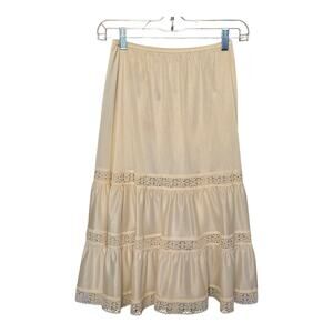 Vintage Morning Star Womens Skirt Slip Tiered Lace Elastic Waist Small Beige