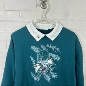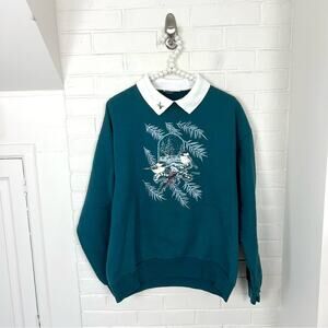 Vintage Morning Sun Collar Bird Print Sweatshirt