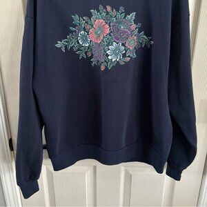 Vintage Morning Sun Grandma Floral Sweater Size Large Made in USA Purple Navy