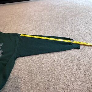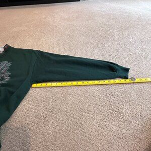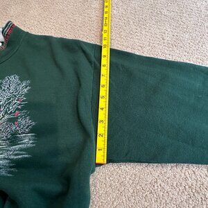 Vintage Morning Sun Sweatshirt Double Collar Snowy Farm Wagon Cardinal Birds Dark Green LARGE Christmas Winter Holiday Sweater Country