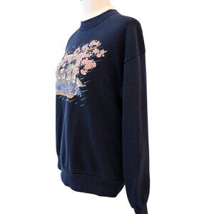 Vintage Morning Sun Unisex Size L Kitty Dog Cherry Blossoms Mock Sweatshirt Top