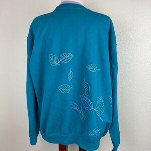 Vintage Morning Sun Womens Teal and Purple Leaf Pattern Sweater Size XL