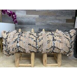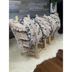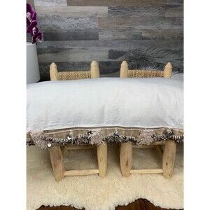 Experience the rich heritage of Moroccan culture with this authentic vintage Handira wedding blanket pillow.