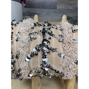 This vintage pillow cover serves as a stunning accent piece for any living room, bedroom, or cozy nook. Its intricate hand-stitched sequins catch the light beautifully, making it a unique bohemian home decor item that tells a meaningful story.